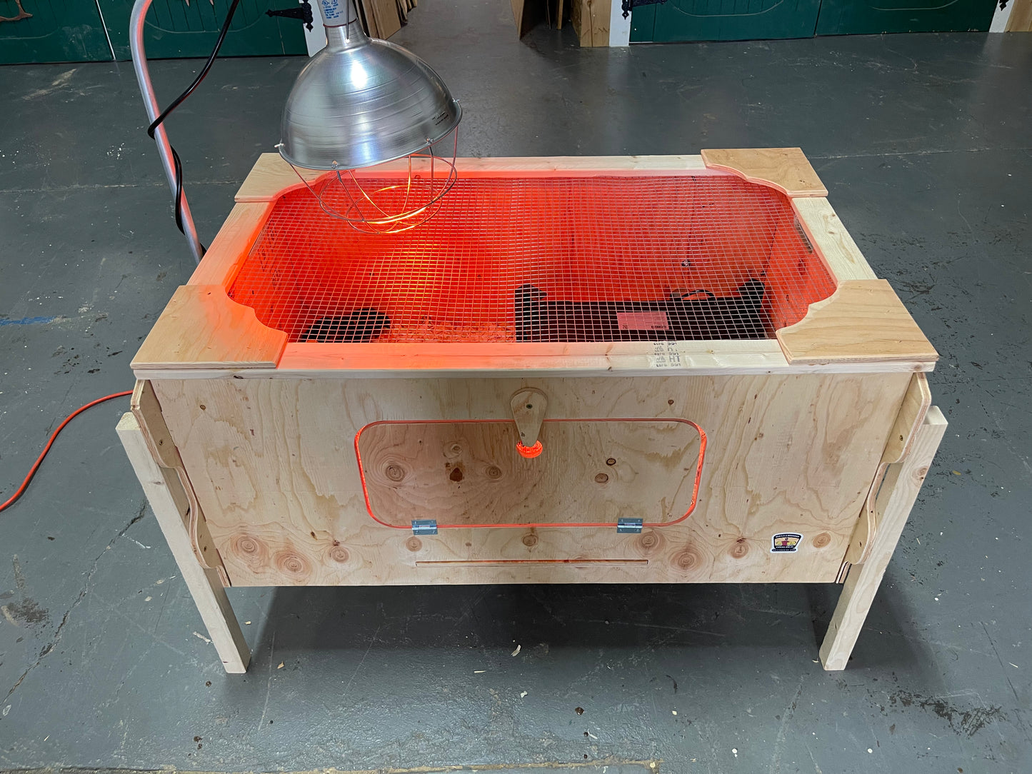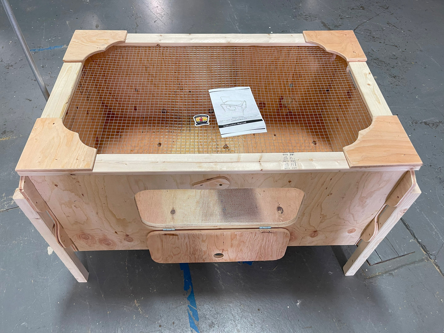 Ben's E-Z Brooder is a high-quality wooden enclosure that offers a secure and nurturing environment for raising chicks. Designed with durability and versatility in mind, this brooder provides a comfortable habitat for young birds and can also be used as a recovery space for injured full-sized birds.