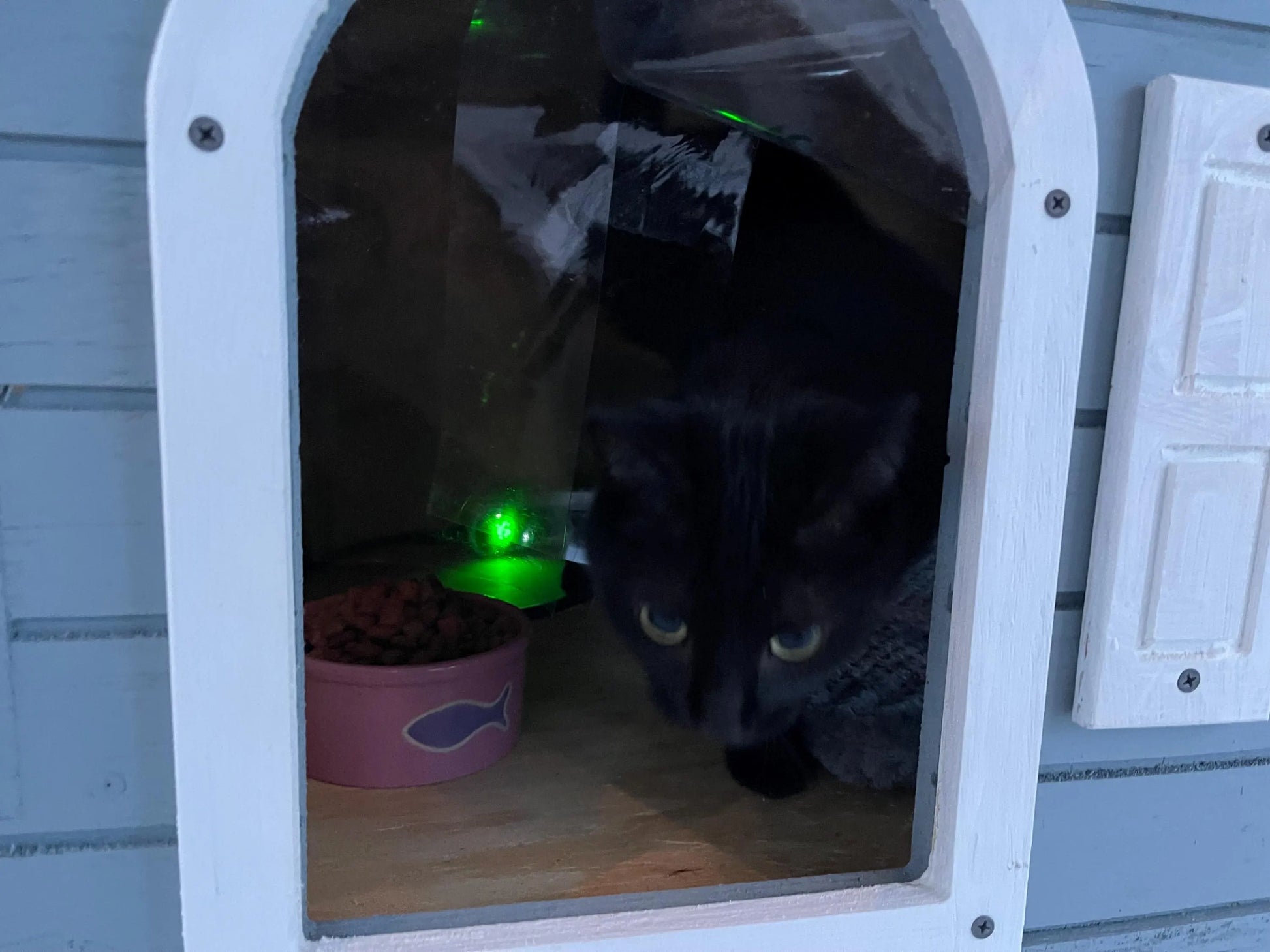 The listing photos show the cat house fully painted, but your kit will arrive unpainted and flat-packed so you can customize the finish to match your home or outdoor space.