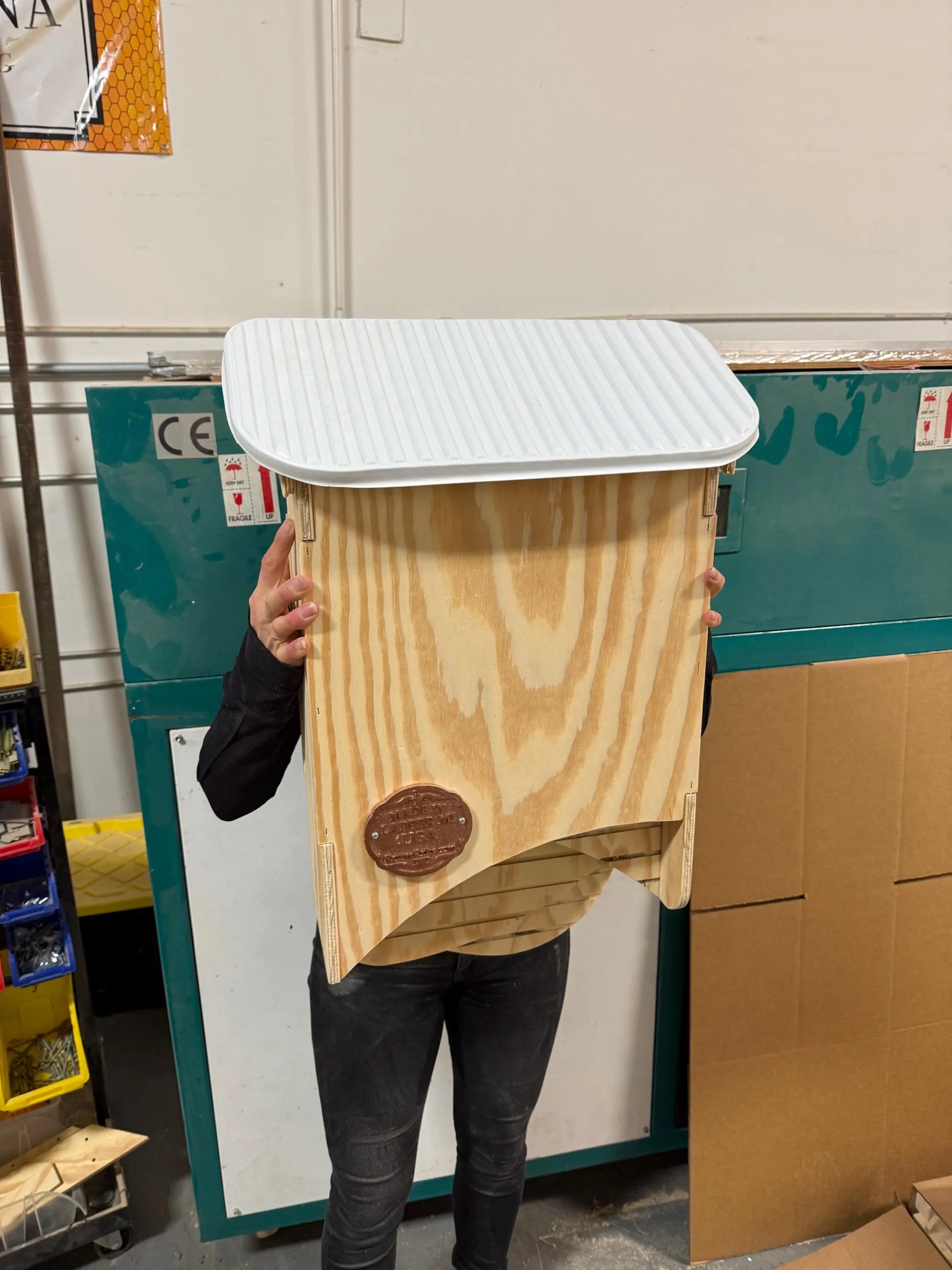 Custom Thermoformed Roof: Shields the plywood top from rain and moisture to dramatically extend the lifespan of the bat house.