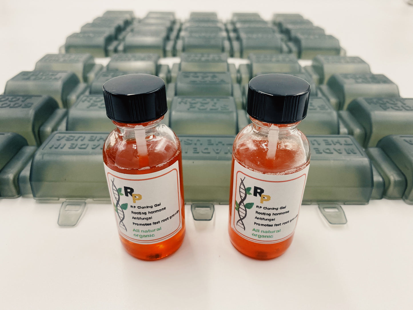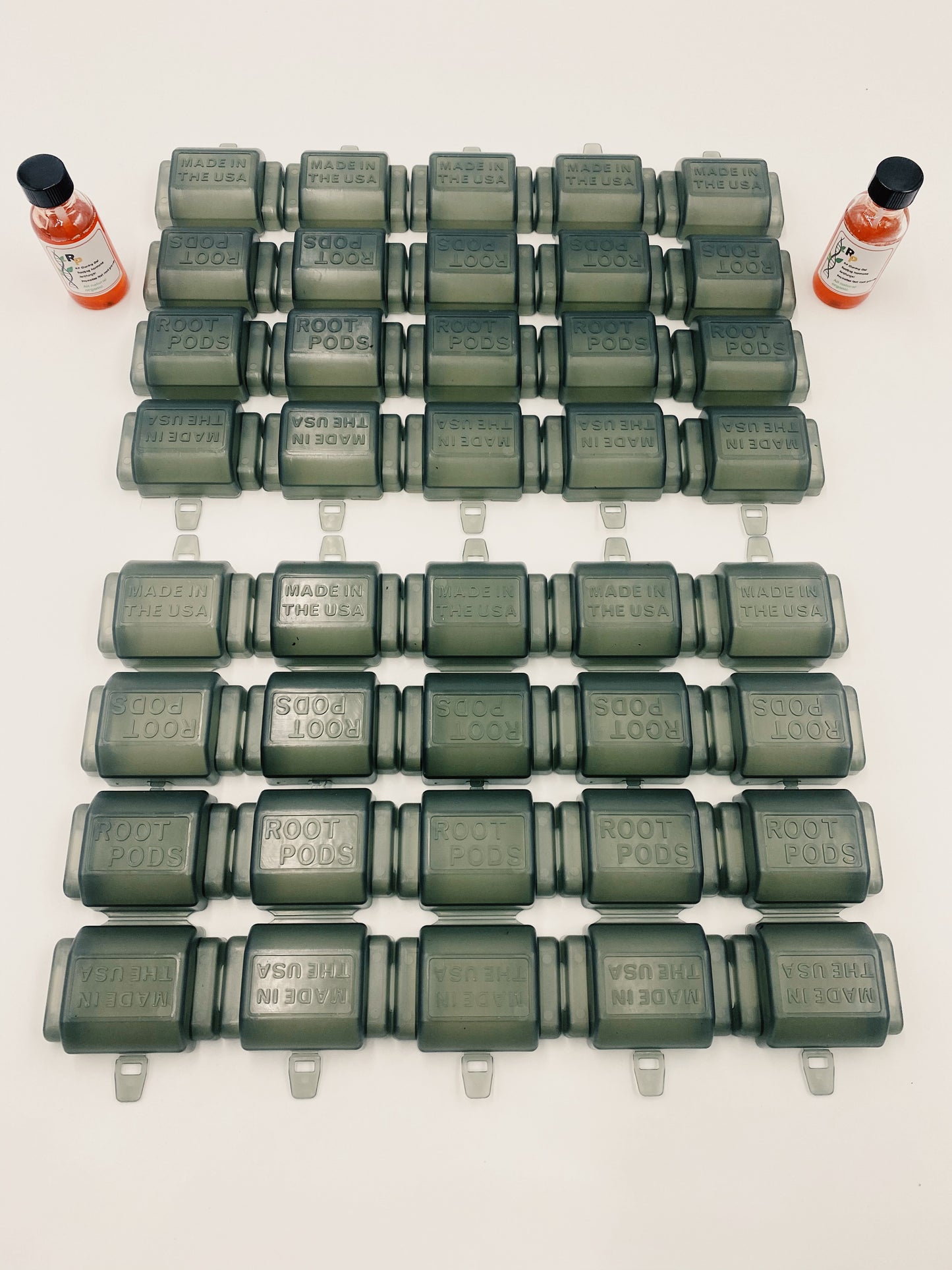 The Pro Kit comes with 20 Root Pods, two 30-ml RP Cloning Gel bottles with brush lids, foam inserts for 20 Root Pods + (extra foam), a large bag of our blended peat soil, and instructions for use.